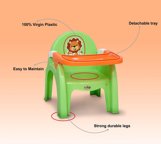 Prima Detachable Baby Desk Plastic Chair 130 | Swings | High Chair | Eating | Feeding | Study | Kids| Green White Orange| Toddlers Booster Seat with Safety Tray for Your Kids