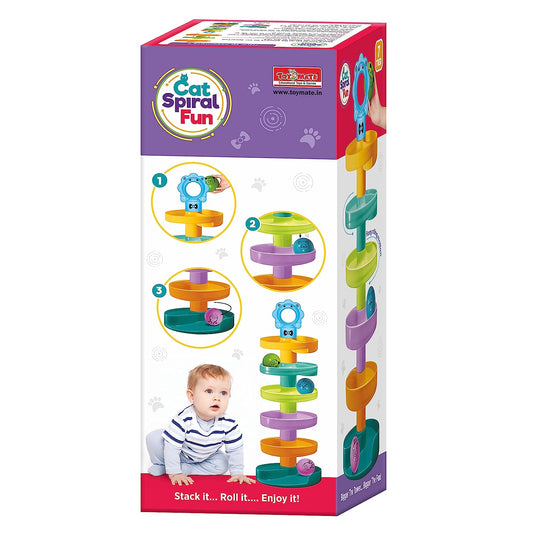 Toymate Cat Spiral Fun - A Roll Ball Toy with 7 Layer Ball Drop Tower Run with Roll Swirling Ramps for Baby and Toddler Educational Development Toy Set