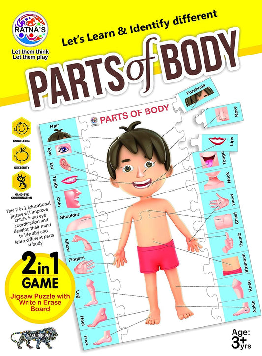 RATNA'S Parts of Body Jigsaw Puzzle for Kids with 2 in 1 Write and Wipe Board with Body Parts
