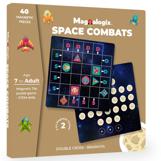 Space Combats - 2 in 1 Magnetic Logic Game for 7 Years to Adult (Double Cross & Brainvita)
