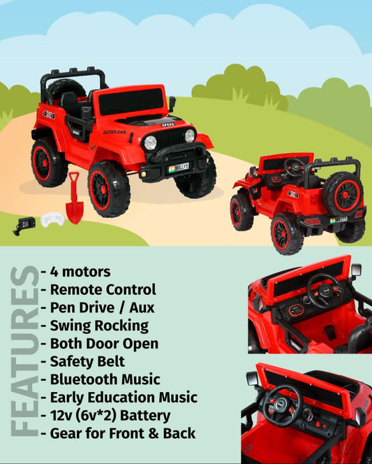 Jeep for kids Ride on electric toy with remote control [1 to 8 years ] Jeep Battery Operated Ride On (Red)