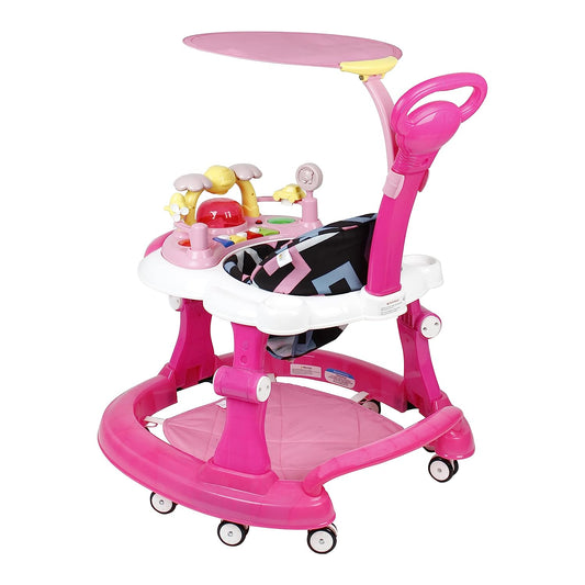 Steelbird Baby Walker with Parental Handle and Toy Bar - Pink