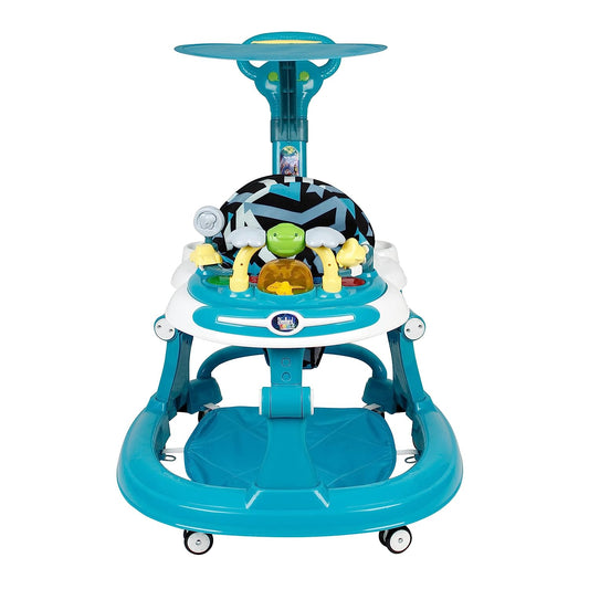 Steelbird Walk-N-Hop Unisex Anti Fall Toddler Hop, Sit & Stand Walker with Sun Shield and Push Hand Bar, Removable Toy Tray, Music System and Height Adjustments for 9-18 Months (Turquoise Blue)