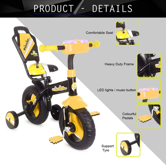 BABYCUTE Plug N Play Kids/Baby Tricycle for 12 Months to 48 Months, Cushion Seat and Seat Belt Boys, Girls, and Up to 30kg Carrying Capacity PIDGI TRICYCLE (YELLOW)