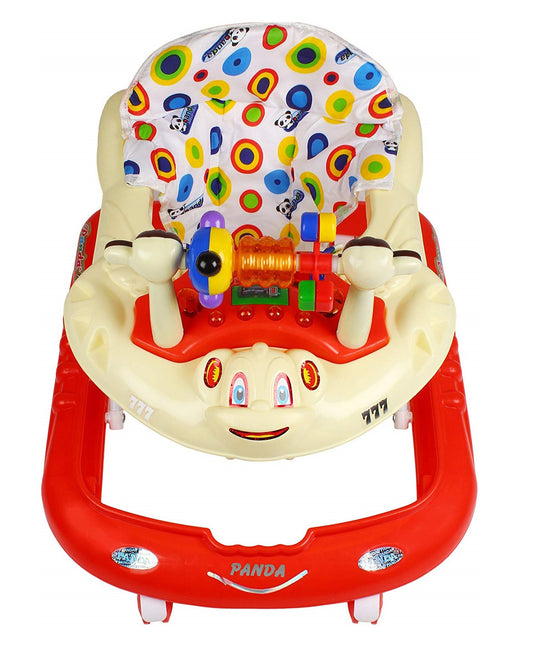 Panda 777 Smart Musical Round Toddler Baby Walker with Comfy Seat and Activity with Light and Musical Toy Bar and Ultra Soft Seat for Kids/Babies (RED)