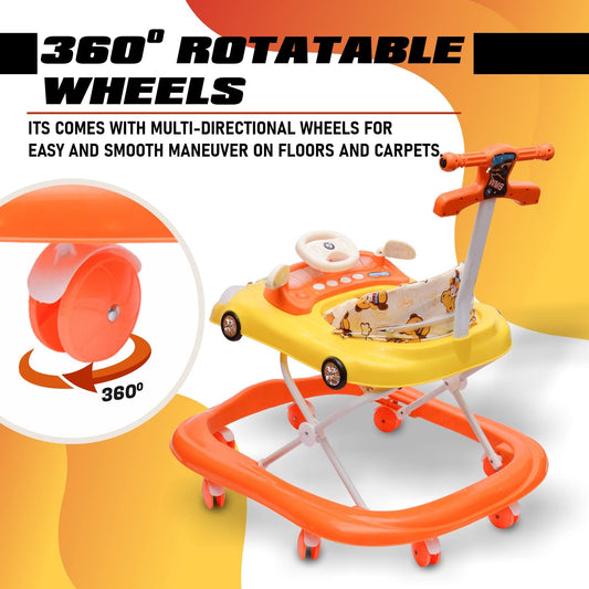 B.M.W Baby Walker Adjustable Height with Height Adjustable 6-18 Months Baby Walker Walker for Kids, Walker with Parental Push Handle | Activity Walker for Baby with Musical Boys Girls (Orange)
