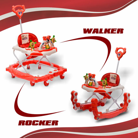 Rocker N Walker Baby Adjustable Height with Height Adjustable 6-18 Months Baby Walker Walker for Kids, Walker with Parental Push Handle | Activity Walker for Baby with Musical Boys Girls (Red)
