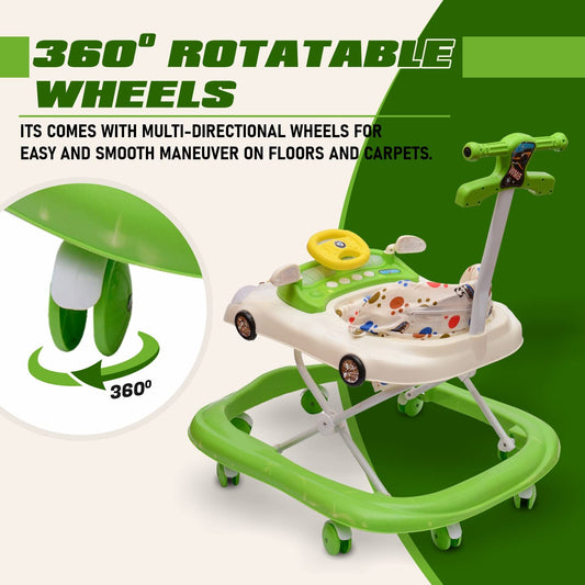 B.M.W Baby Walker Adjustable Height with Height Adjustable 6-18 Months Baby Walker Walker for Kids, Walker with Parental Push Handle | Activity Walker for Baby with Musical Boys Girls (Green)
