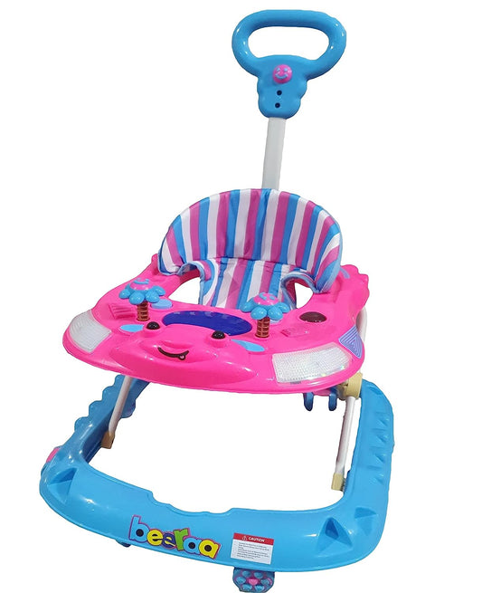 Baby Walker 6-18 Months Learn to Walk with Height Adjustable Light and Music Attractive Colours for Baby Boy and Girl (Beera with Handle Pink-Blue) (Pack of 1)