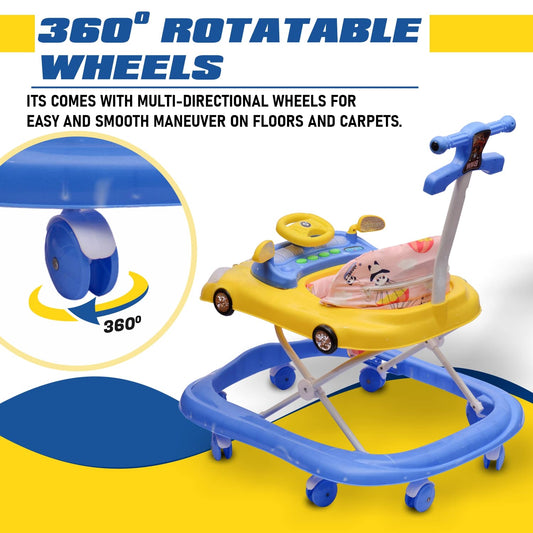 B.M.W Baby Walker Adjustable Height with Height Adjustable 6-18 Months Baby Walker Walker for Kids, Walker with Parental Push Handle | Activity Walker for Baby with Musical Boys Girls (Blue)