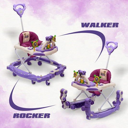 Rocker N Walker Baby Adjustable Height with Height Adjustable 6-18 Months Baby Walker Walker for Kids, Walker with Parental Push Handle | Activity Walker for Baby with Musical Boys Girls (Purple)