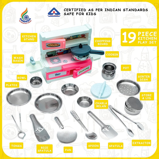 Green House 19 Pieces Kitchen Set for Kids.A Perfect Roleplay Pretend Play Kitchen Play Set for Kids.