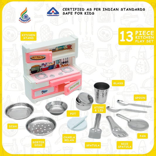 Kitchen Set for Kids.A Perfect Roleplay Pretend Play Kitchen Play Set for Kids (Pure Veg Big Kitchen Set)
