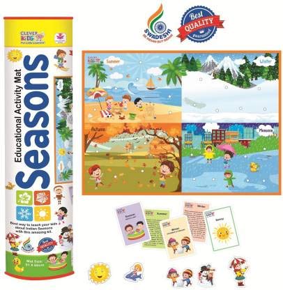 Ratnas Seasons Educational Activity Mat - Multicolor Seasons Activity Mat ( 91 cms X 66 cms Jumbo Mat) with 12 Both Sides Printed Flash Cards & 25 Different eva Cutouts