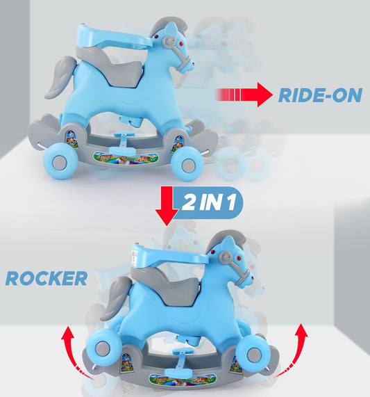 Dash Marshal 2 in 1 Ride on Horse for Kids, Horse Rider for Kids 1+ Years, Rocker Comes Ride on Toy with Attractive Music for Kids (Capacity 20kg color may vary)|