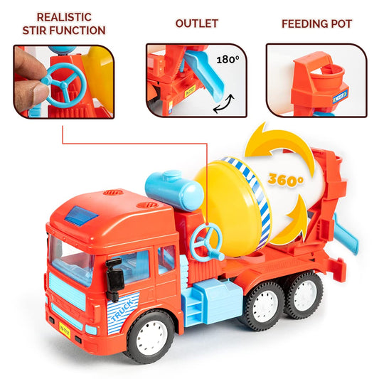 RATNA'S My First Wheels Toy Cement Mixer Truck Friction Powered Realistic Big Size Automobile Construction Engineering Plastic Toy Vehicle for Kids MIX COLOR