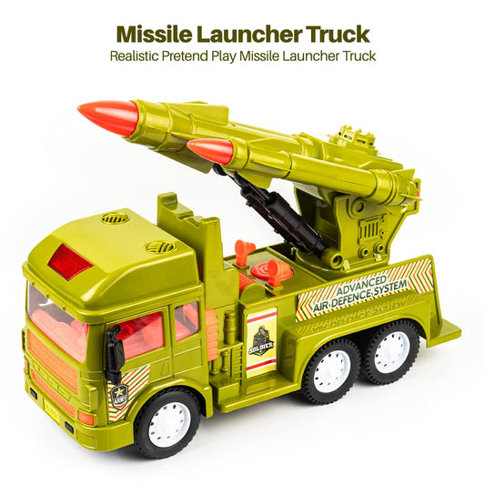 MY FIRST WHEELS Ratna's Missile Launcher Truck Pull Back Friction Toy (Green) for Kids 5 +