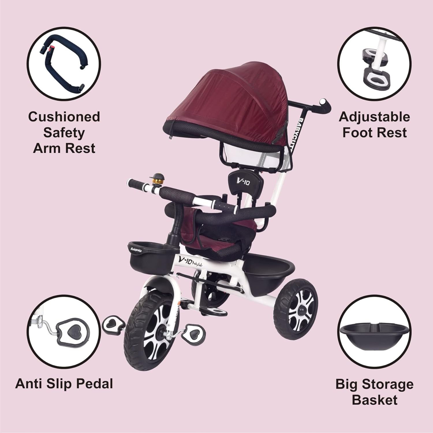 v 10 BabyCute Cycle for Kids, Plug and Play Baby Sports Tricycle with Canopy for 2 to 5 Year Old Children V 10