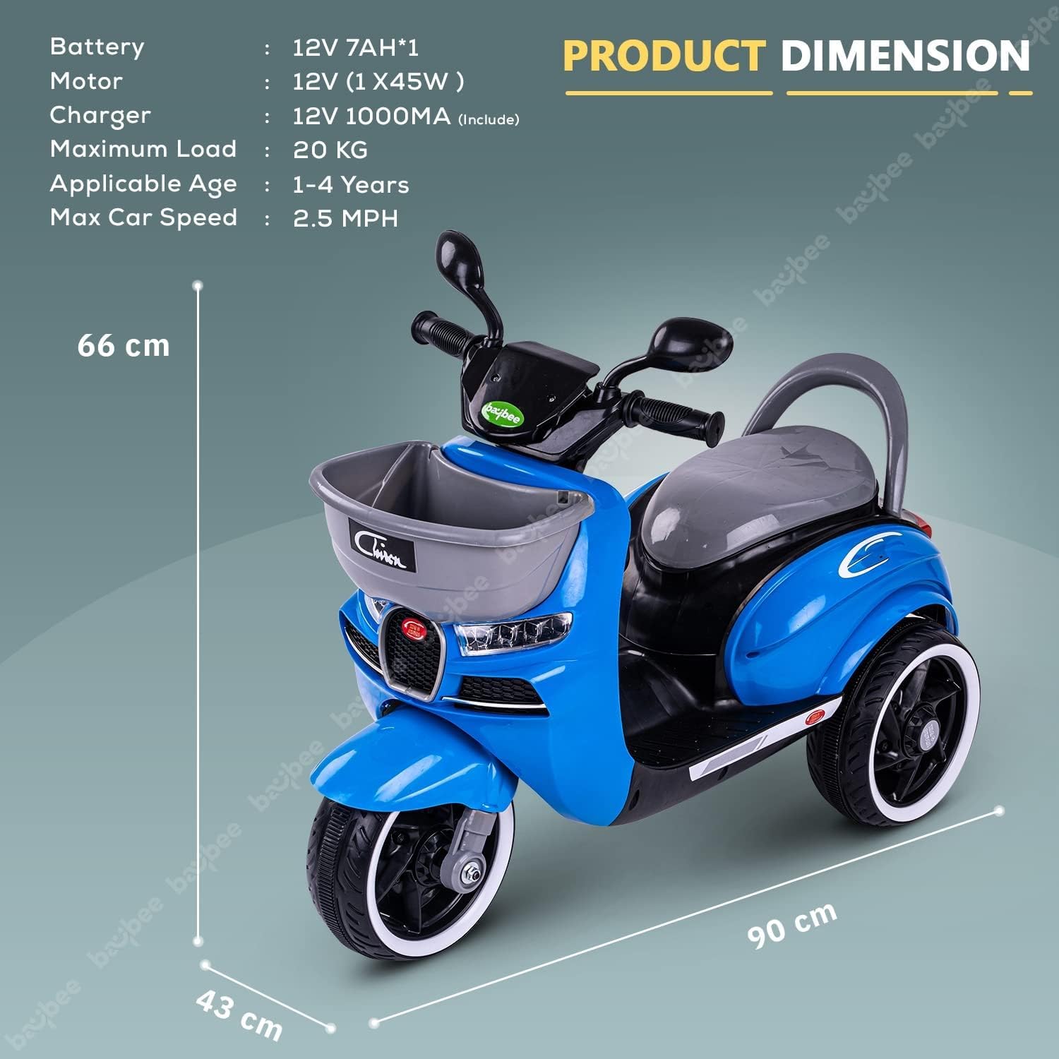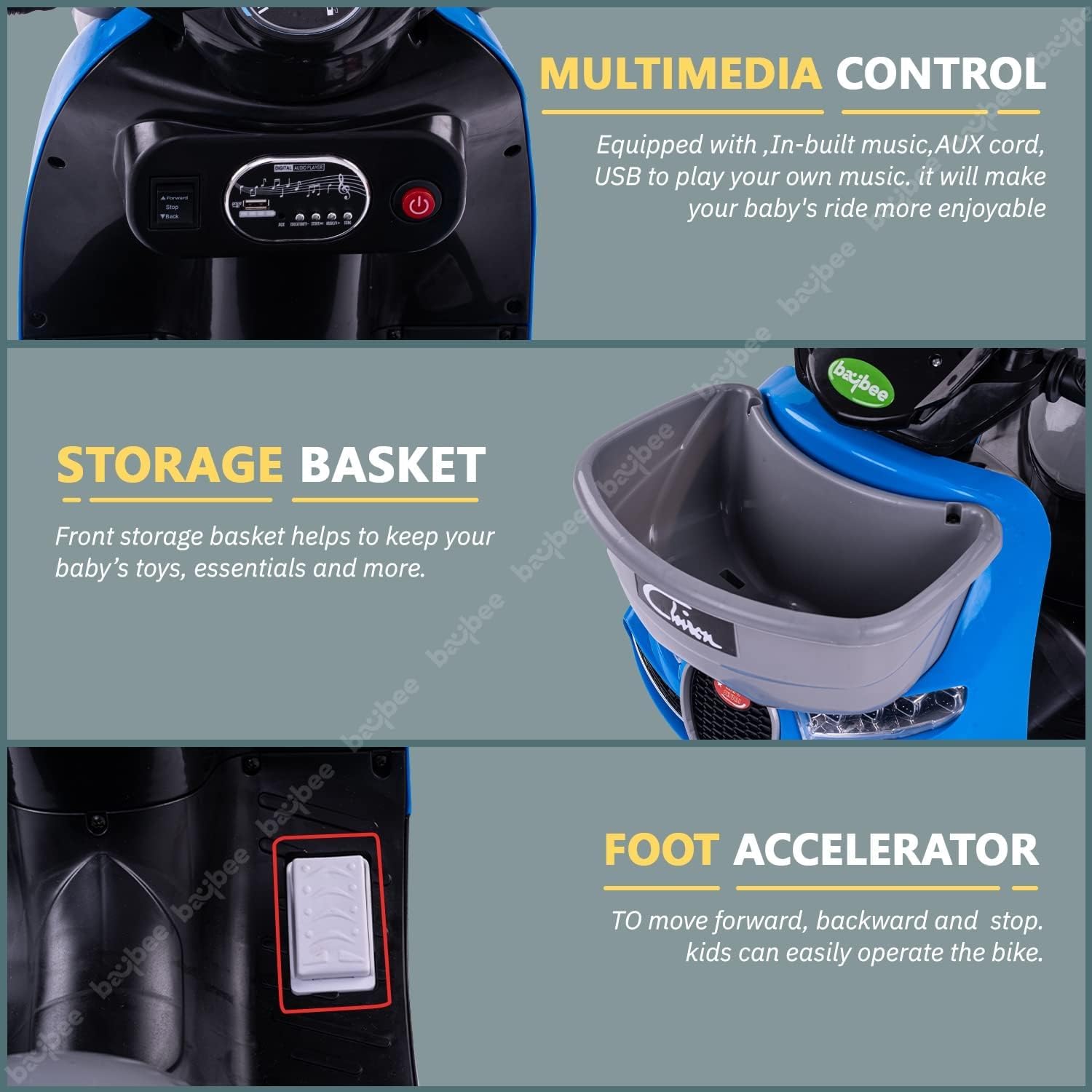 Baybee Pepto Kids Battery Operated Bike for Kids, Ride on Toy Baby Bike Scooty with Light & Music | Kids Bike Rechargeable Battery Bike | Electric Bike for Kids to Drive 1 to 3 Years Boy Girl (Blue)