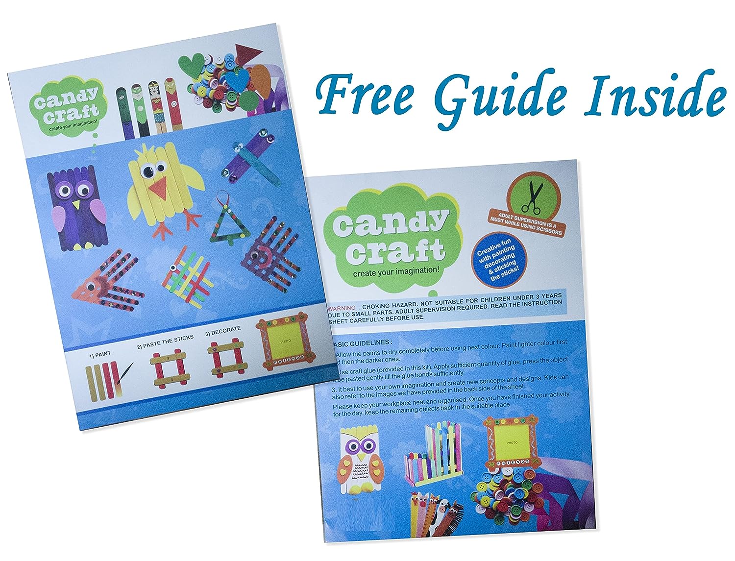 "We bring you easy to make handicraft from candy sticks. Candy Kraft is very common art serves as best option for making ""best out of waste “items and gives inspirational ideas for project work. Allows one to create, Personalise, customise, and decorate. Increases creative enthusiasm in kids. Bring home the fun of creating something new and unique each time through the innovative process of Recycling. Not only does it encourage kids to think out of the box but also pushes them forward towards 3R's- Recycle, Reduce and Reuse for sustainable development. GIFT IDEA. The art and Craft kit is an excellent gift as it is inexpensive, comes in many varieties, and can be bought any time of the year. Ideal as Birthday Gift for Boys and girls of 4 5 6 7 8-year-old This art party supply adopts 3D pattern design that boys and girls will love. The busy girl/ boy craft toy kit is creative and challenging, children can accumulate a lot of experience in the process of making. Best Educational Gift -Cute gift packaging, portable and collectible, it is a precious gift for kids in their lifetime -This colourful craft kid can be used as a gift for boys, girls, daughters, sons, nieces, nephews, granddaughters, grandchildren, and neighbours -Suitable for birthday parties, preschool kindergarten classrooms activities, family gatherings, holiday parties and other occasions It is an interactive learning game that can improve children's social skills. These kids travel activity is made of eco-friendly & thick foam material, perfect cut, strong self-adhesive, no scissors and glue needed, non-toxic & no odour, simple & safe to use. The creative kid project suitable for children and beginners to create individually, and it is also the best interactive handicraft project for playing with parents. If it feels like your child has a birthday party every weekend, our DIY Kit is the answer!