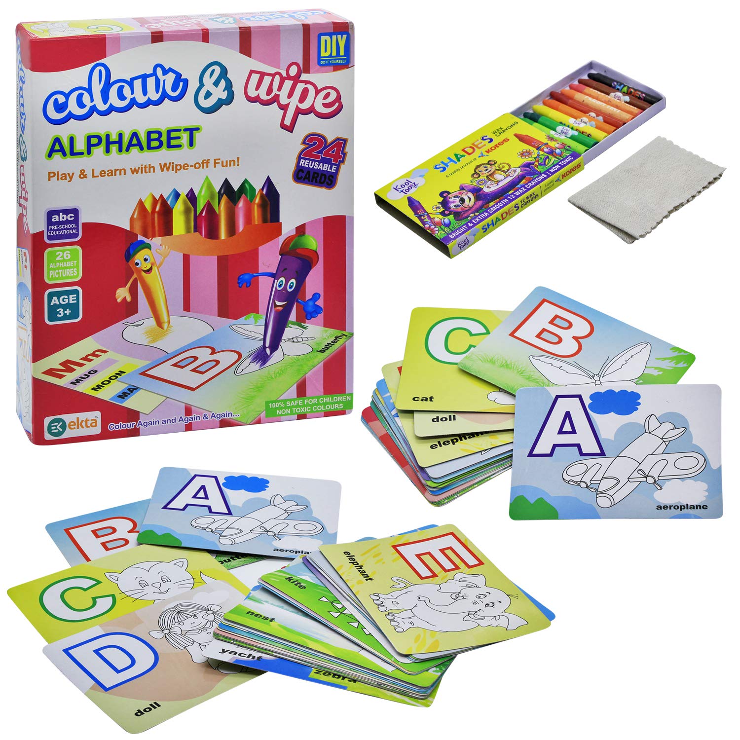 - Do It Yourself Kit Of 24 Reusable Cards to Play And Learn. Colour And wipe off fun
