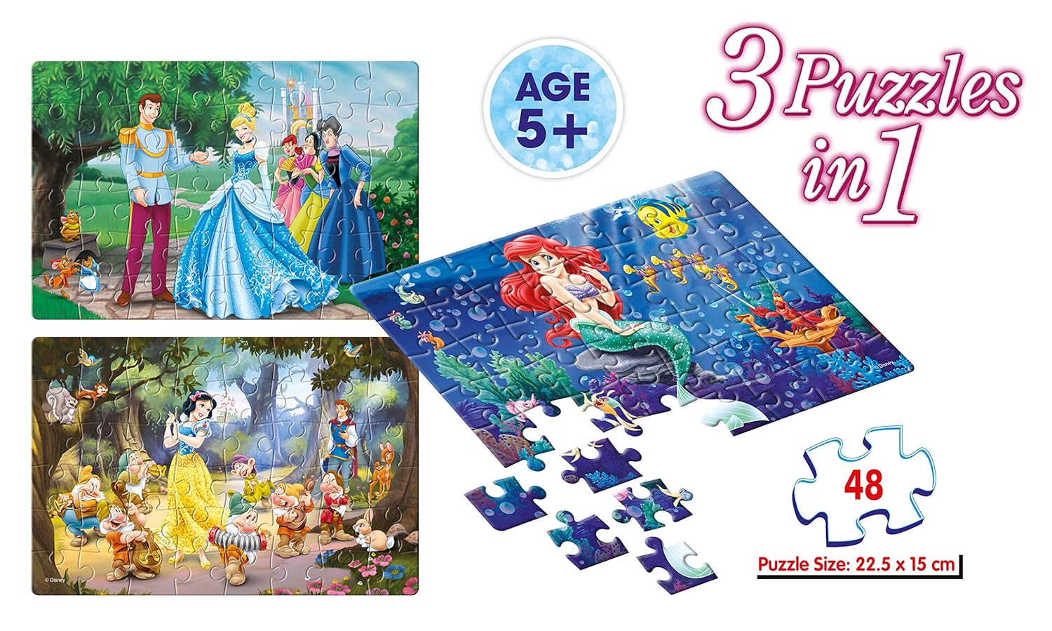 Frank Disney Princess Puzzles - 48 Pieces 3 in 1 Jigsaw Puzzles for Kids for Age 5 Years Old and Above