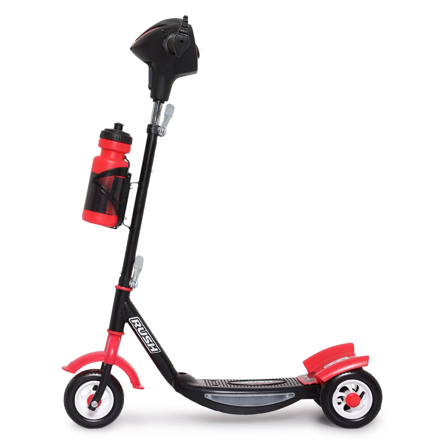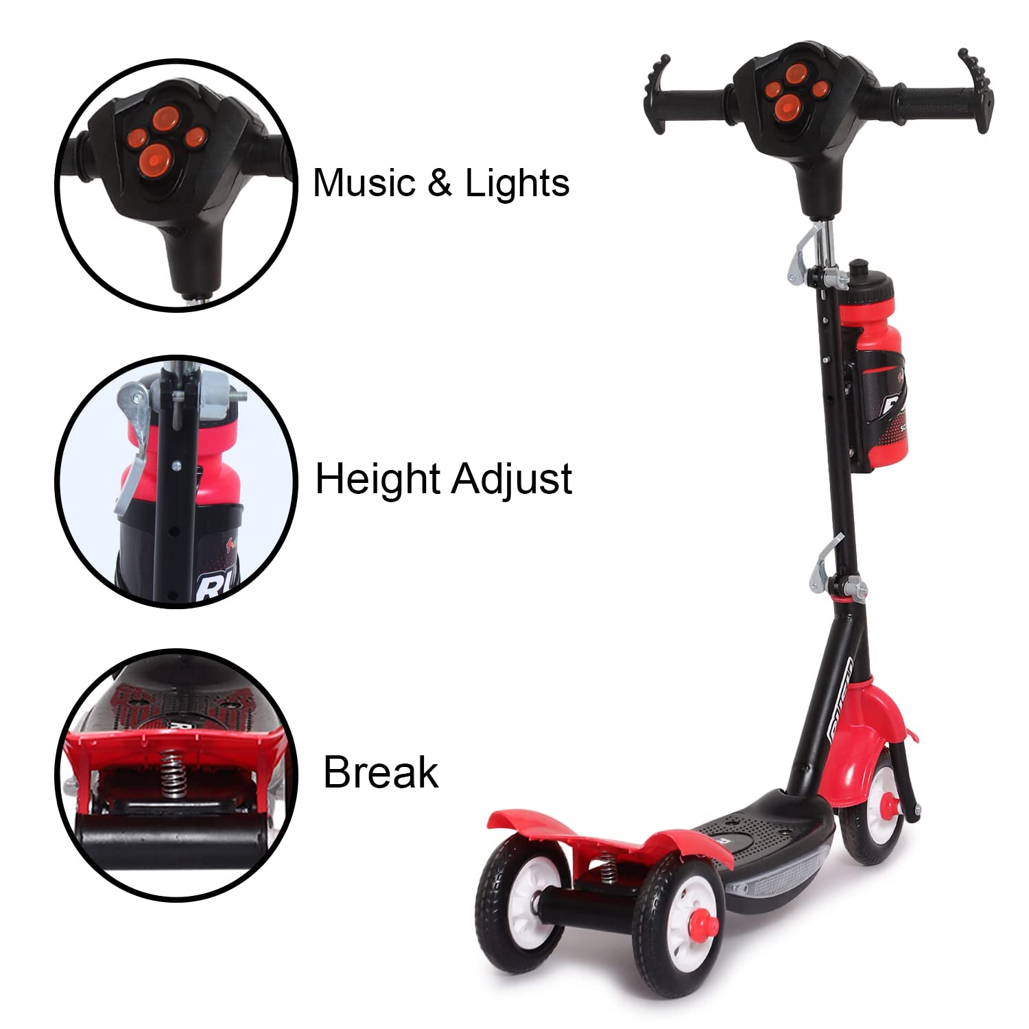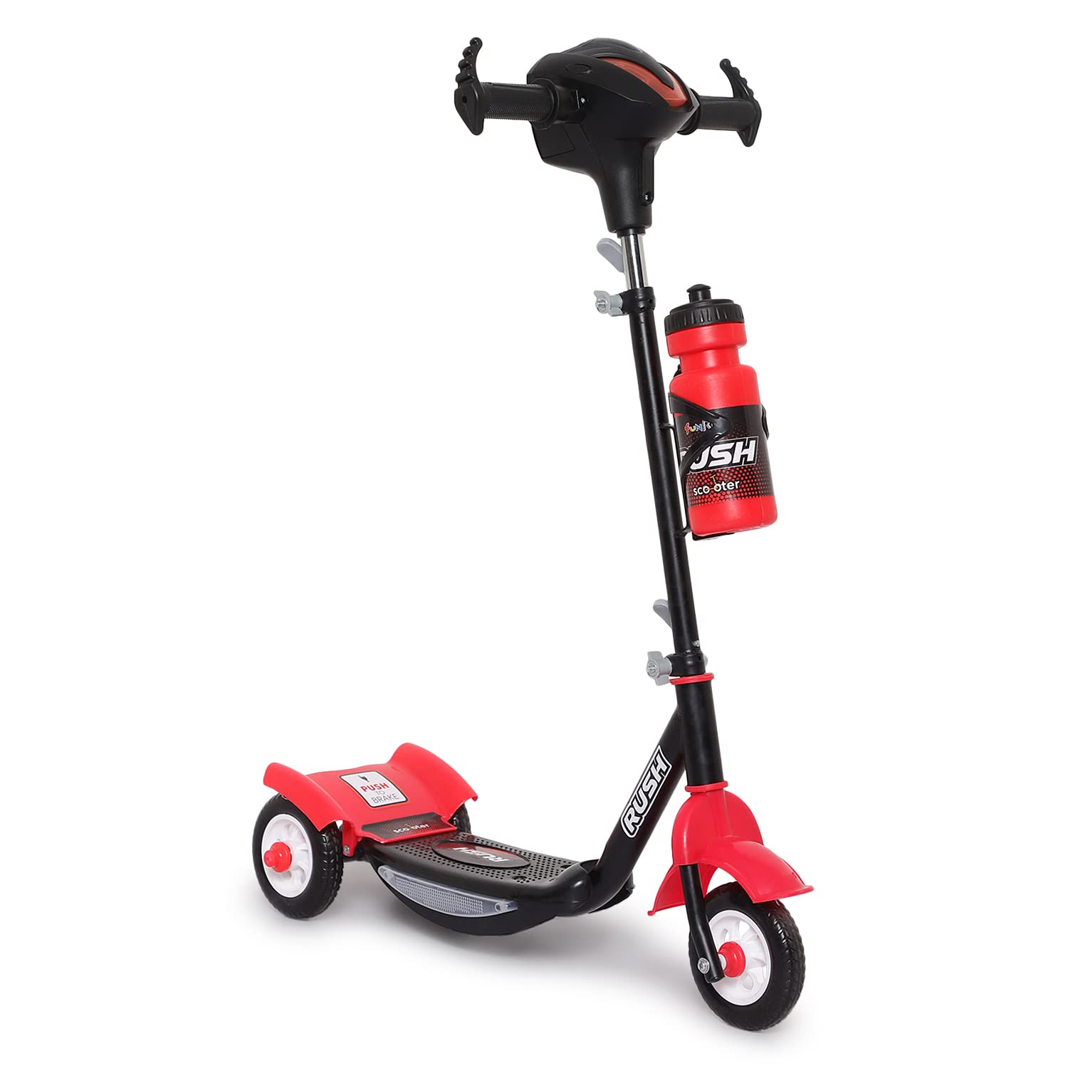 Fun Ride Funride Kids Scooter Rush Dx with Lights & Music, Three Wheel Kick Scooters for Boys & Girls with Sipper, Adjustable Height & Rear Brake, 3 Wheels Skate for Age 3-10 Years (Red)