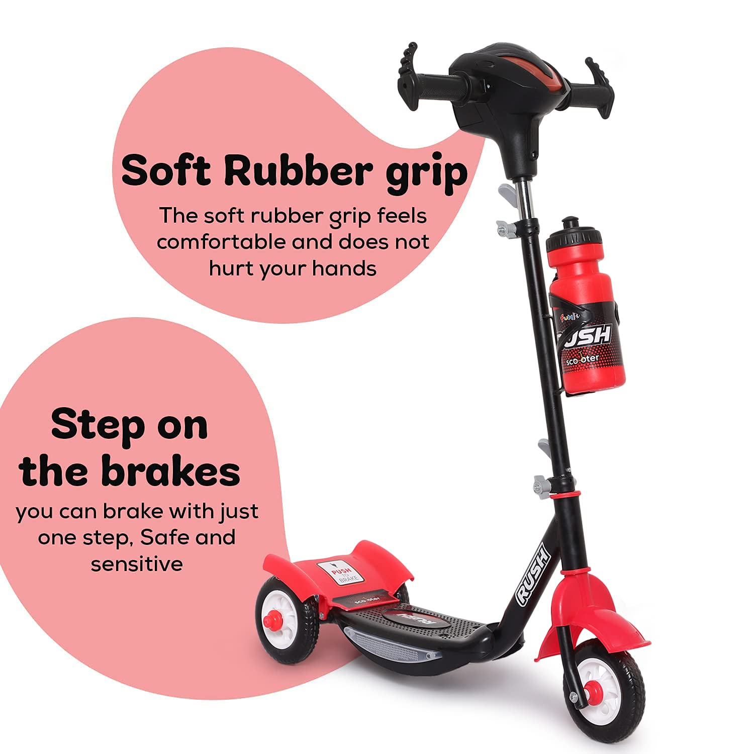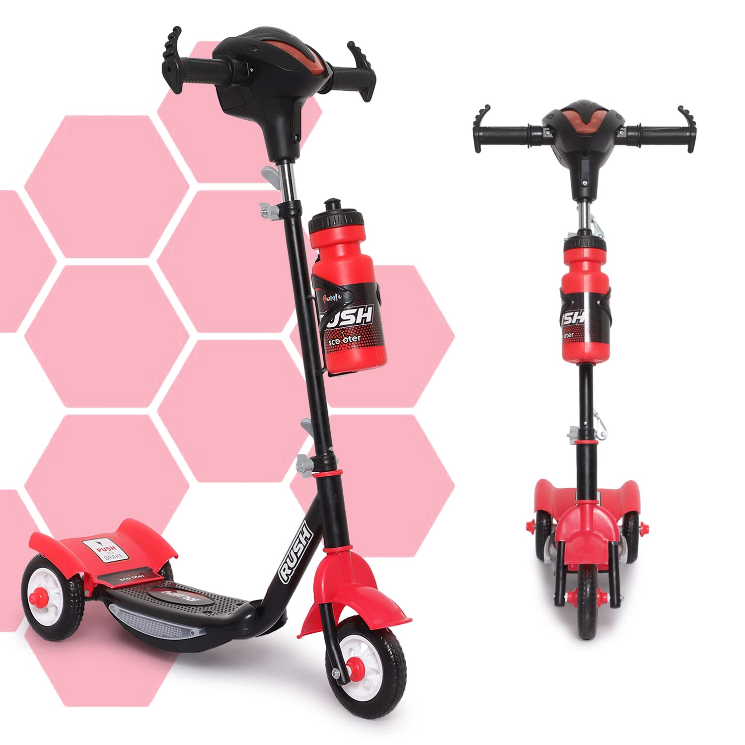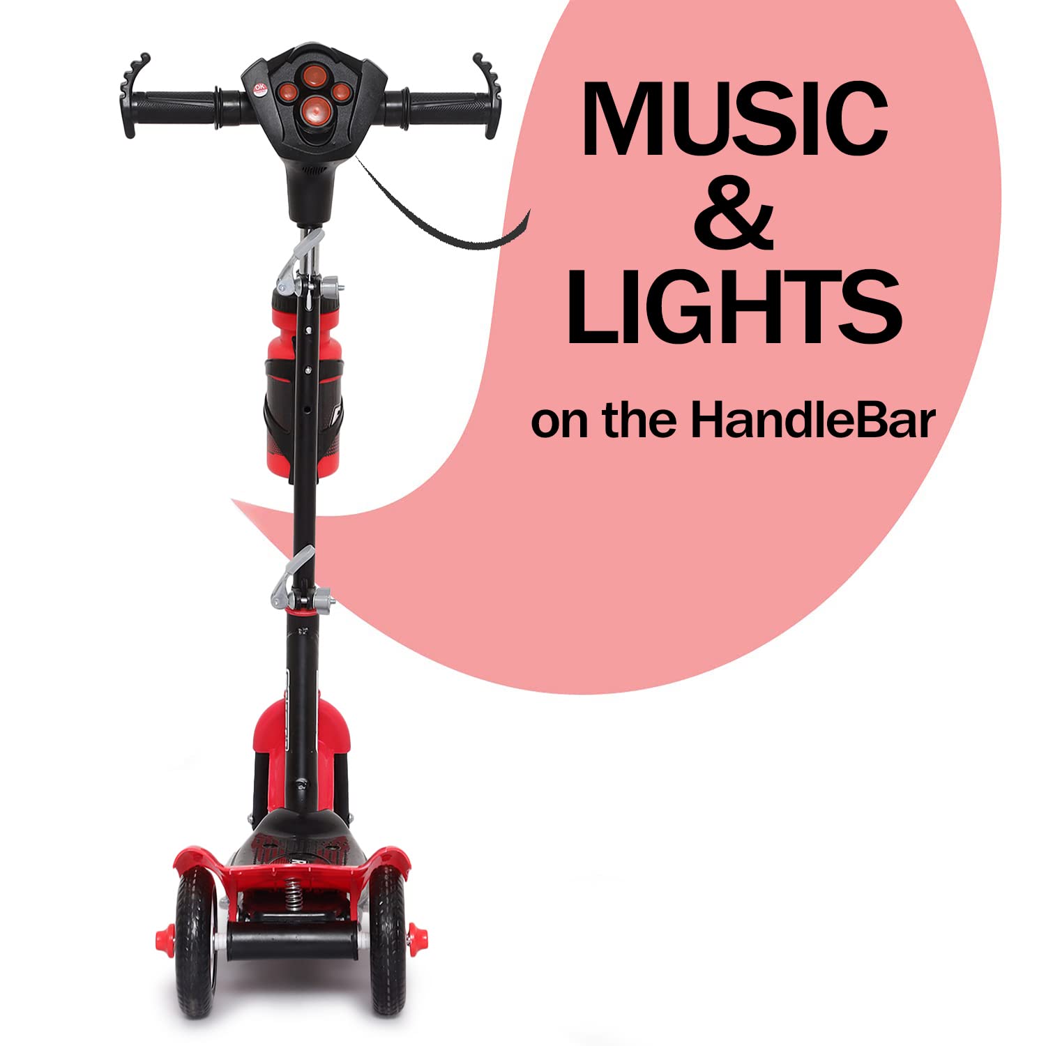 Fun Ride Funride Kids Scooter Rush Dx with Lights & Music, Three Wheel Kick Scooters for Boys & Girls with Sipper, Adjustable Height & Rear Brake, 3 Wheels Skate for Age 3-10 Years (Red)