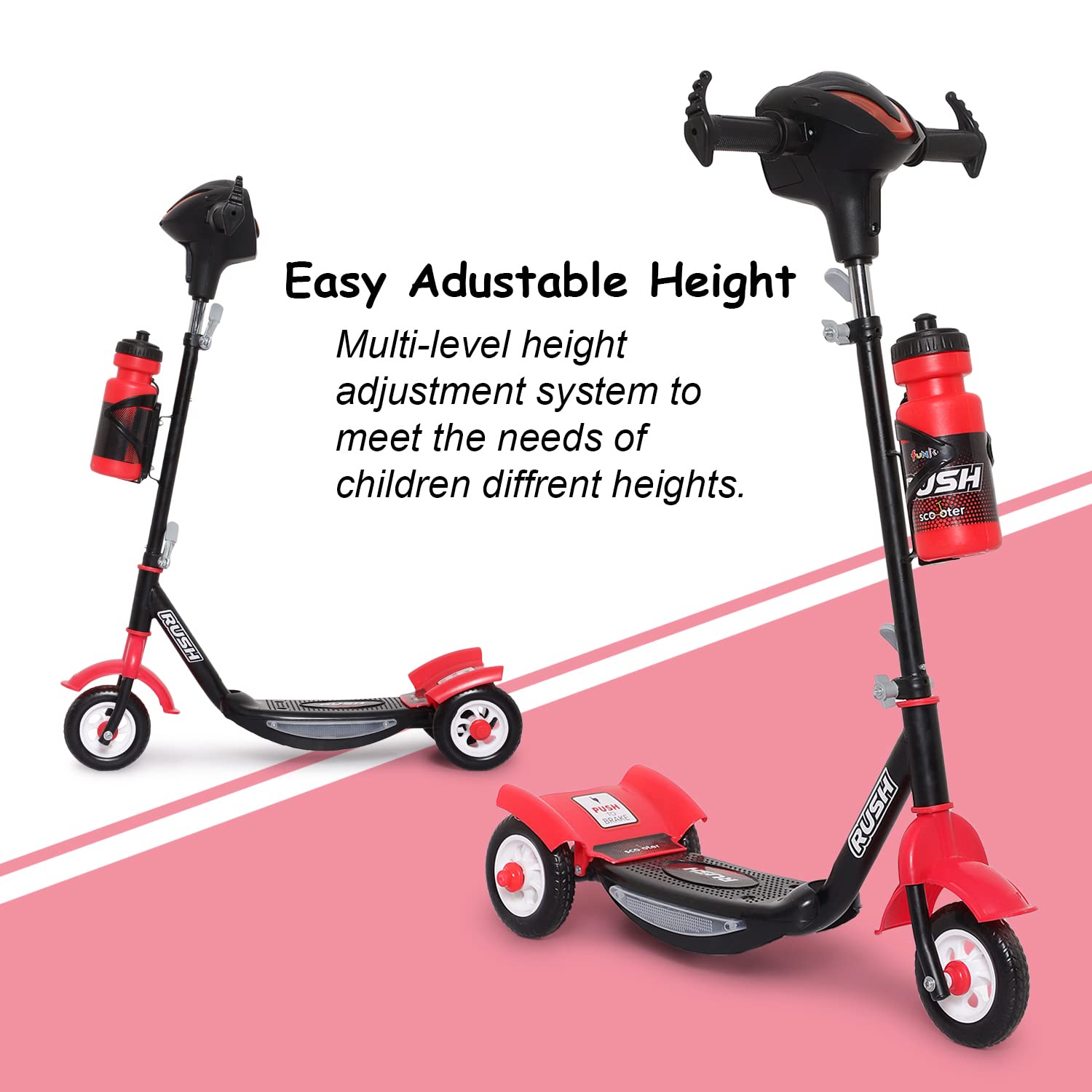 - ADJUSTABLE & STURDY: The kick scooter designs with adjustable handlebar, which means that you can adjust T-bar with 3 adjustable height options to accommodate ages 2 - 4 Years, Made of sturdy aluminum alloy and steel, weighs only 3 Kg, making it easy for you to maneuver and carry.