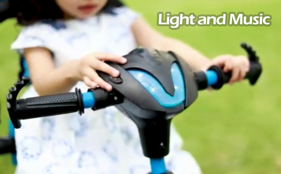 - SAFE DESIGN WITH PARENTAL HANDLE:This Kids Musical Tricycles is with Removable Parental Control Handle and fresh newly designed Musical Head with The supportive seat with large backrest ensures your baby's hip stays in place. The EVA widen silent wheels to keep it steady on uneven surface. it’s a kind of good bike gift,Perfect kids' tricycles for your children.