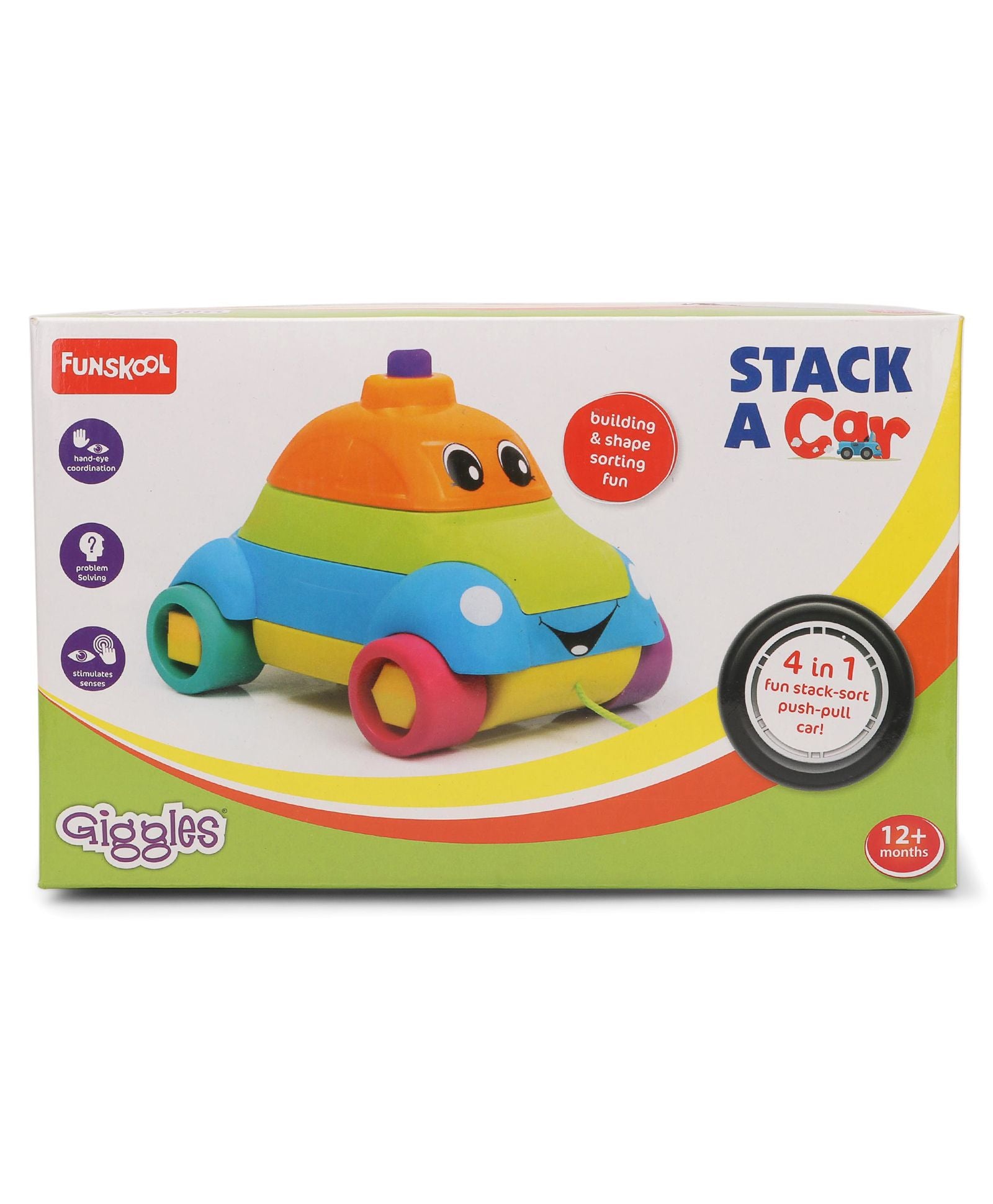 Are you looking for a toy to bring loads of happiness to your little angel? Funskool toys are the ideal choice for your kids. Funskool stack a car is a lovely toy to bring a cute smile on the little one's face. It's a brightly coloured toy, which appears to be very attractive to the child. At the same time, it keeps the child engaged during their playtime. Toot toot. Make way for a car with many possibilities. It comes with three compartments each of which can be taken out separately. They can be fixed back when the shapes are matched. This helps the child recognize shapes and also in hand-eye co-ordination. The detachable wheels with different shapes add to the fun. The car put together can be pulled along for a jolly ride and press the car top for squeaks. Toddlers aging above 9 months consider this toy as an interesting item to play with all the time. This stack a car toy is very safe to play with. It is so because high standards are maintained while designing this exciting toy. This push and pull along toy, with bright colour, lends visual stimulation. Above all, this Funskool toy is ideal to improve your toddler's learning ability. It's a wonderful product to keep the family members free of worries while letting the child play with this attractive toy.