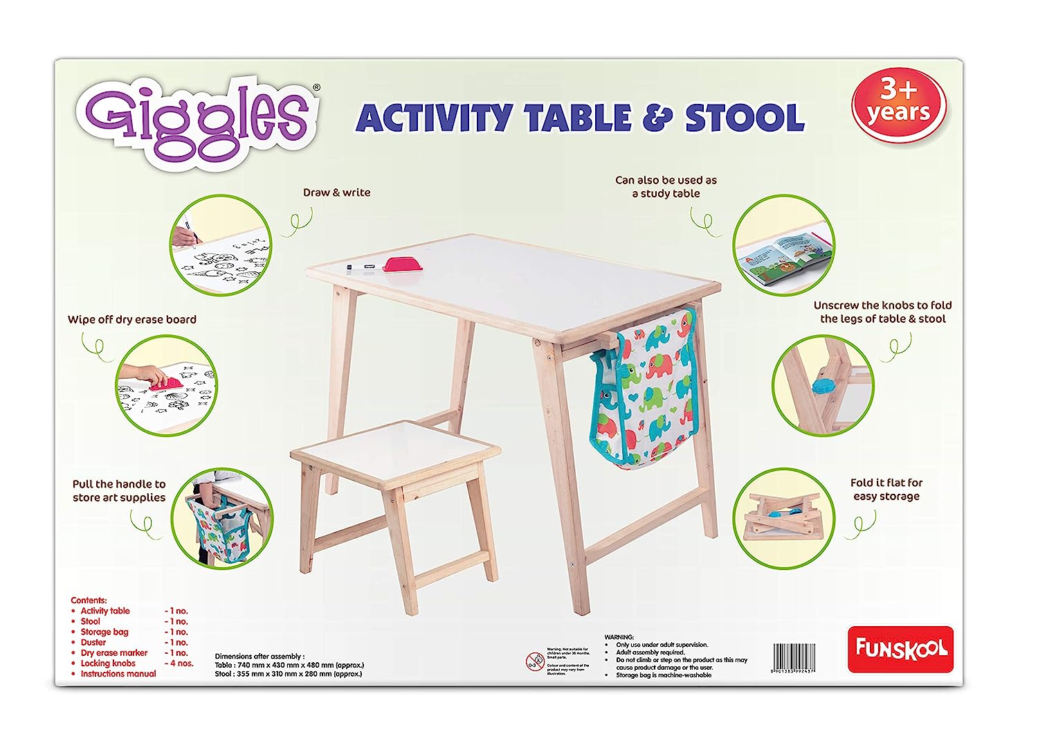 Giggles - Activity Table & Stool, Wooden Kids Study Table, Dry Erase Board,Studying and Storage, 3 Years & Above, Preschool Toys