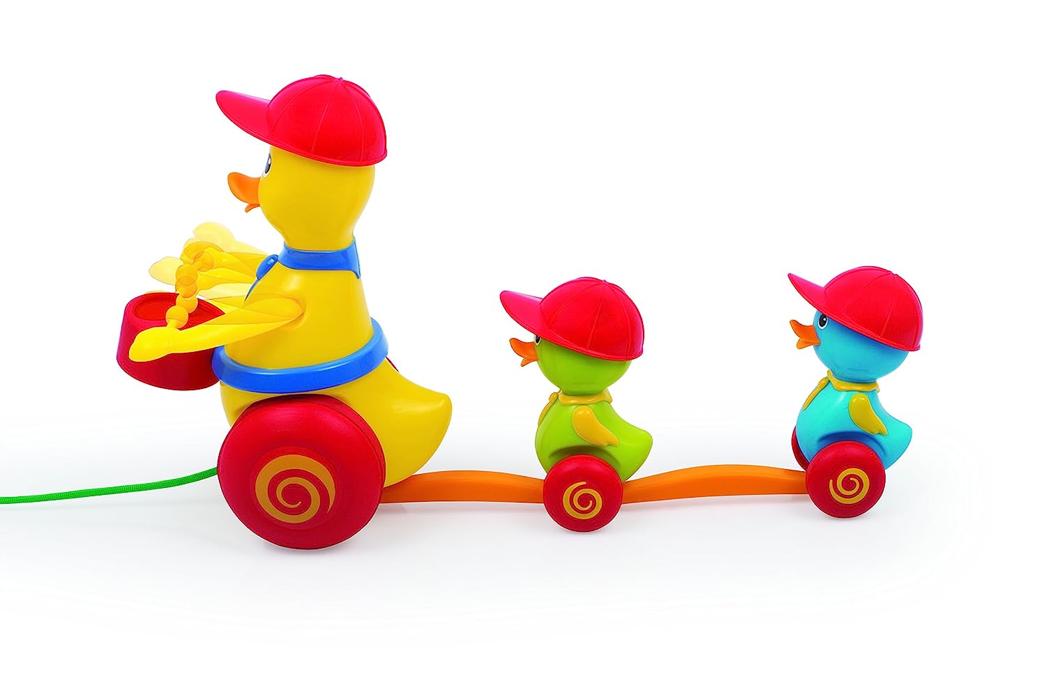 - Funskool giggles duck parade - entertaining pull-along toy headed by drum beating mother duck followed by a train of waddling ducklings