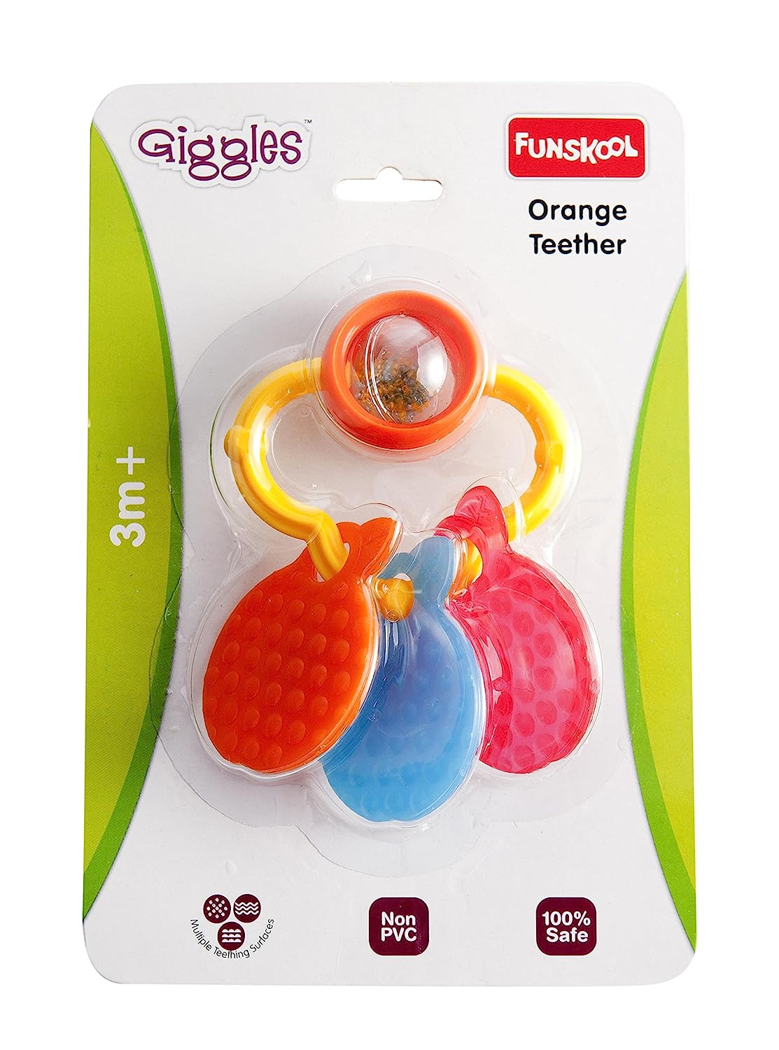 Giggles Funskool Giggles - Orange Teether, Teether for Babies to sooth their gums, Easy to Grasp and chew with rattle sounds, 3 months & above, Infant Toys