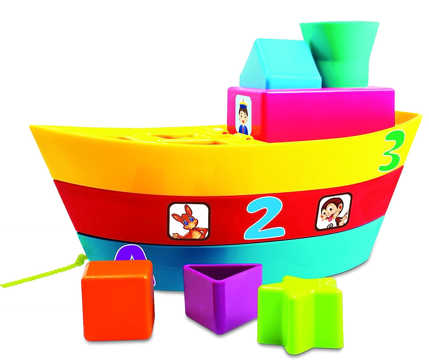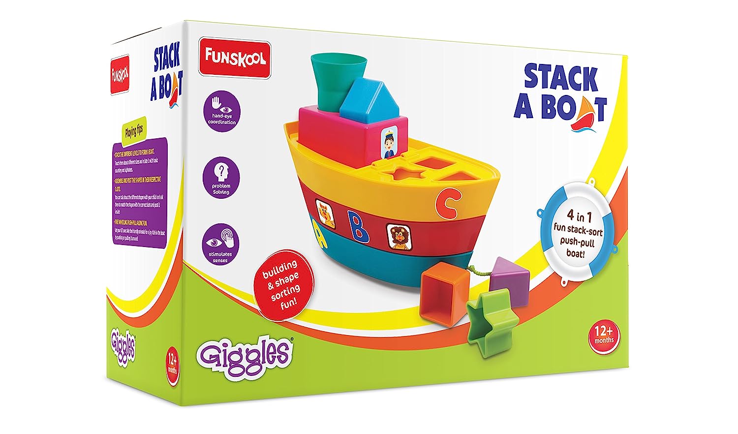 Giggles - Stack A Boat, 2 in 1 Pull Along Toy, Walking, Shape Sorting,Pretend Play, 18 Months & Above, Infant and Preschool Toys (Multicolor)