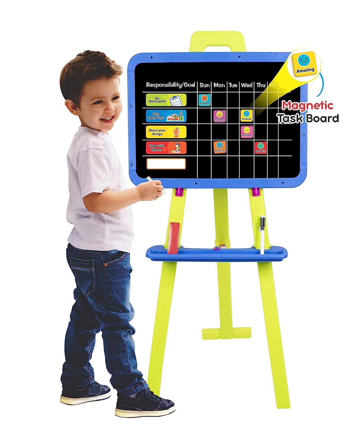 - 8-in-1 Easel Board: The Art Easel for Kids is ISI Approved and 100% safe for kids as per BIS standards. It is the perfect way to encourage your little one’s imagination while keeping them engaged in hours of arts, crafts, projects, and play. With a black dry erase board on one side and chalkboard on the other, your child can finish their masterpiece with the included art accessories.