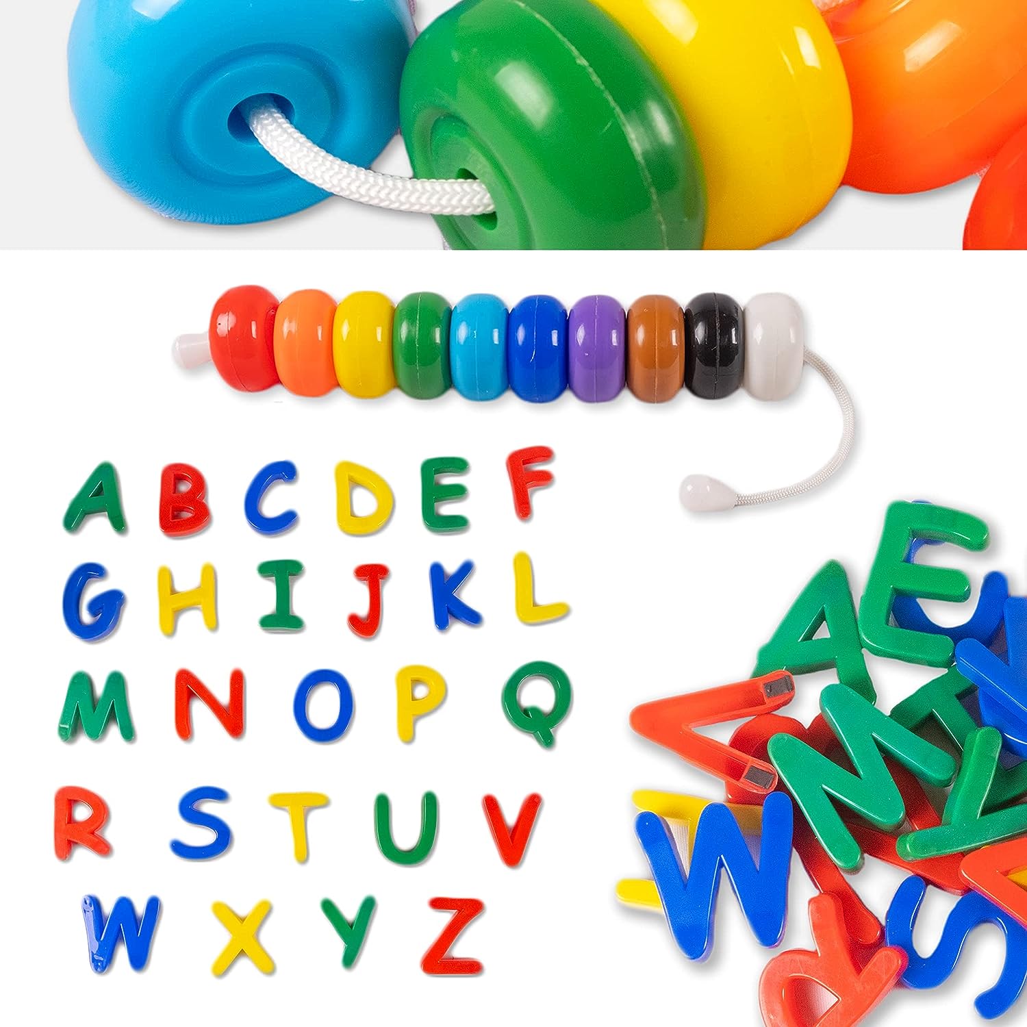 - Contents: Jumbo Size 26 Alphabets, 10 Numbers & 10 Colorful Beads