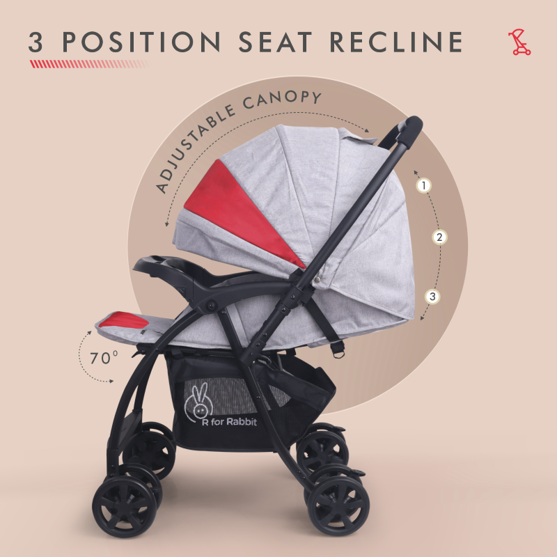 Multiple Recline: Adjust to recline position of the baby with multiple recline options for comfy strolling time.