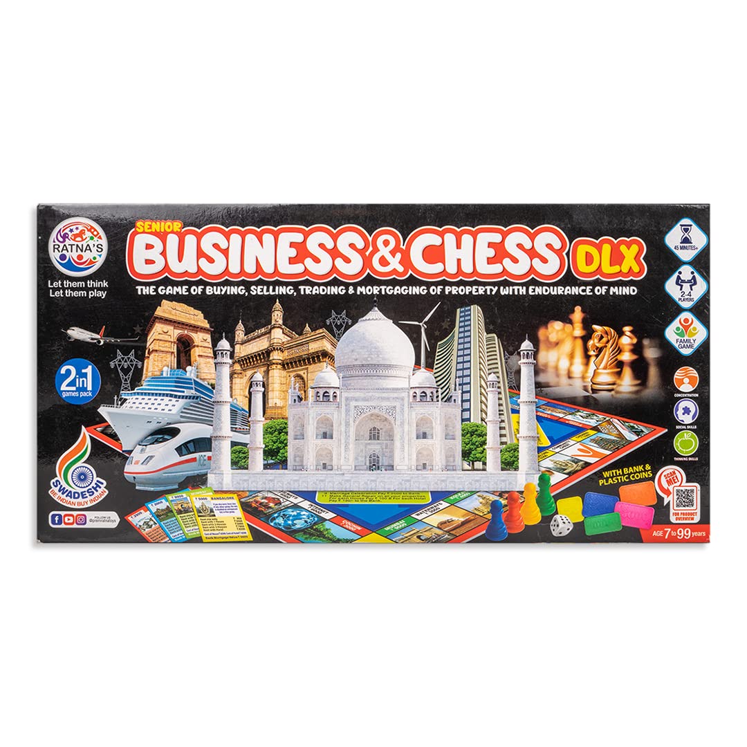 RATNA'S 2 in 1 Business and Chess Deluxe Board Game with Biscuit Coins for Kids - Develop Concentration and Brain Skills with Multicolor Paper and Plastic Set - Perfect Family Strategy Game for All Ages