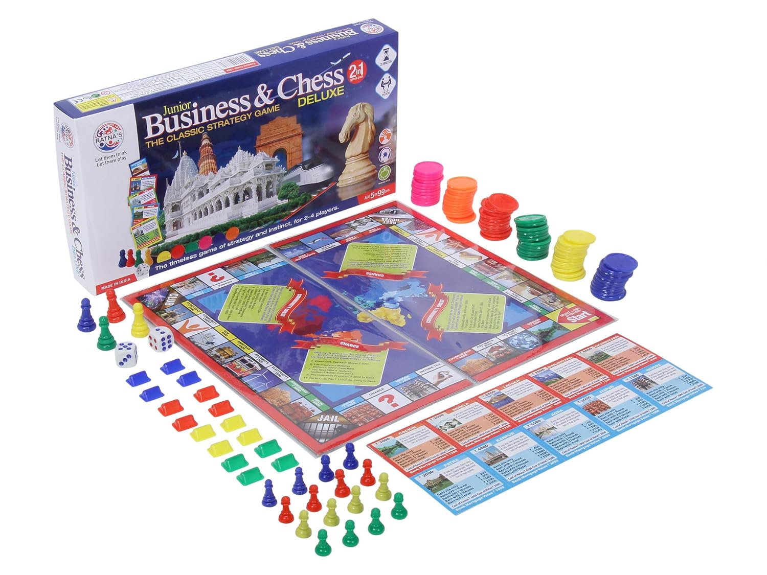 Ratna's 2 in 1 Business & Chess Junior Deluxe Board Game | Board Size: 11 Inches * 11 Inches for 7+ Years