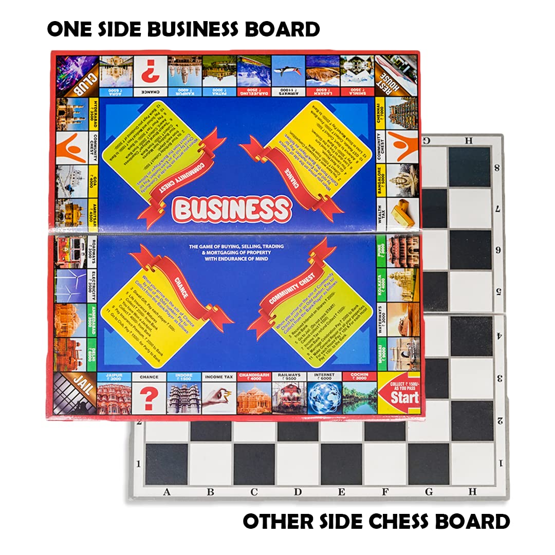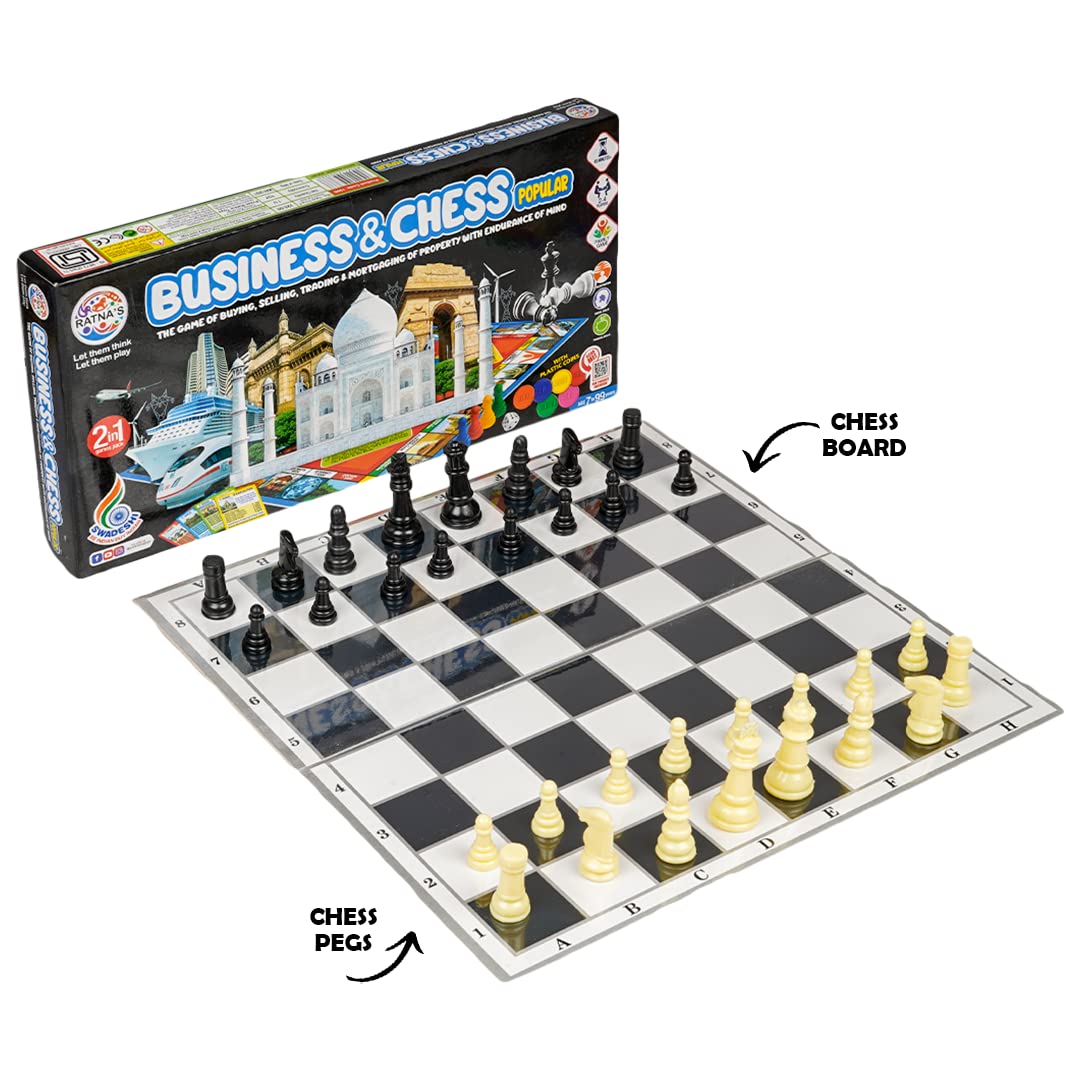 Ratna's 2 in 1 Classic Game Chess and Business Popular for Kids to Enhance Their Thinking Skills, Concentration, Attention Span Building, Hand Eye Coordination etc with Coins