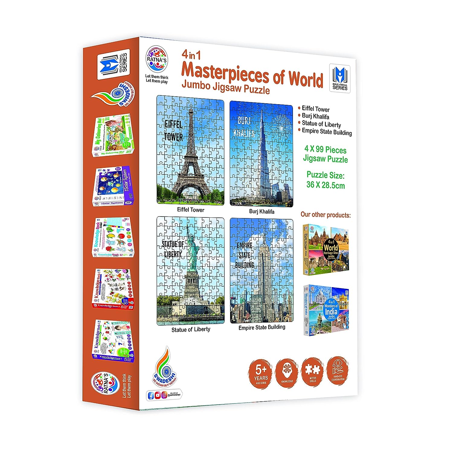 Ratna's 4 in 1 Masterpieces of World Jumbo Jigsaw Puzzle (4 x 99 Pieces) Size 36 x 28.5 cm for Each Puzzle Educational Toy for Kids 5+ Years
