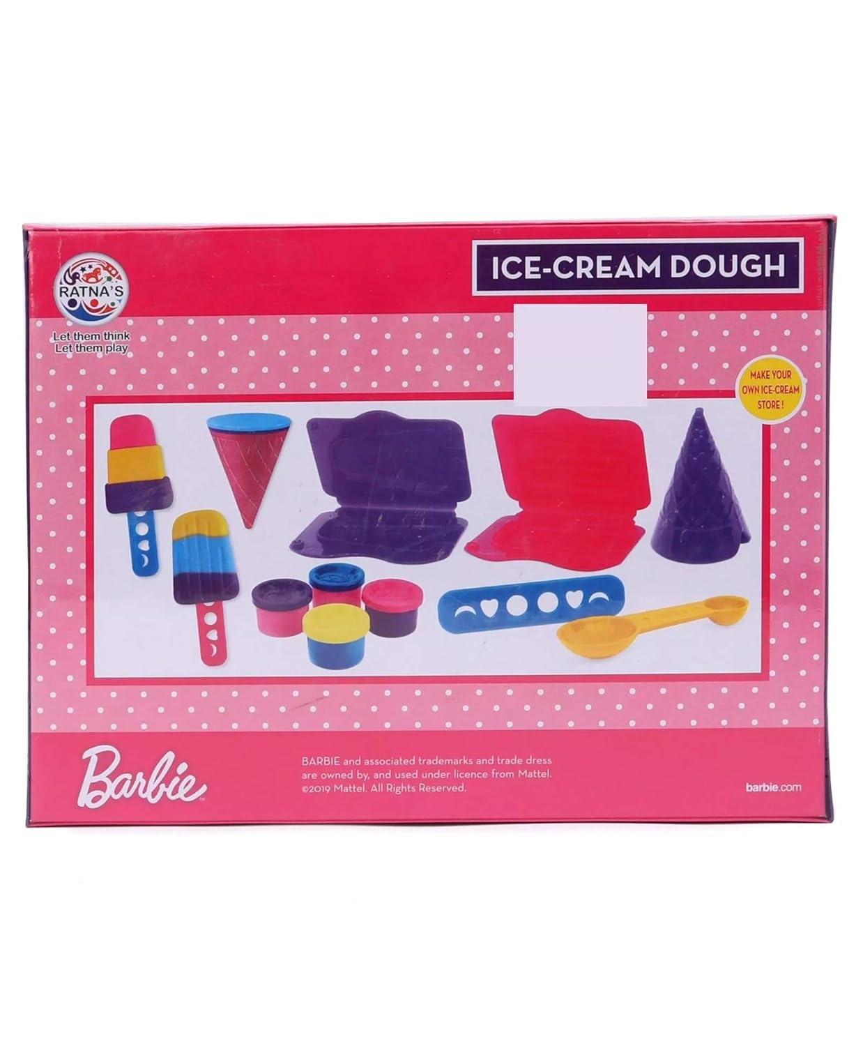 - Have your own Play-Dough sundae fun day with Ratnas Barbie ice cream dough! Now you don't have to choose between a dish or a cone, because this set has both! The easy-release scoop makes it super simple to grab some Play-Dough ice cream out of the can. Make the candy ice cream or cone this set has both.