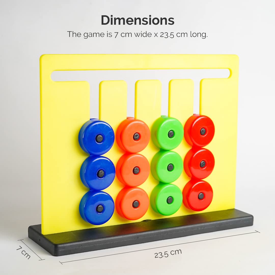 - Colour Challenge Slide & Match tricky mind game for kids, comes with detailed instructions on how to play the game along with 12 coloured coins fitted in a board.