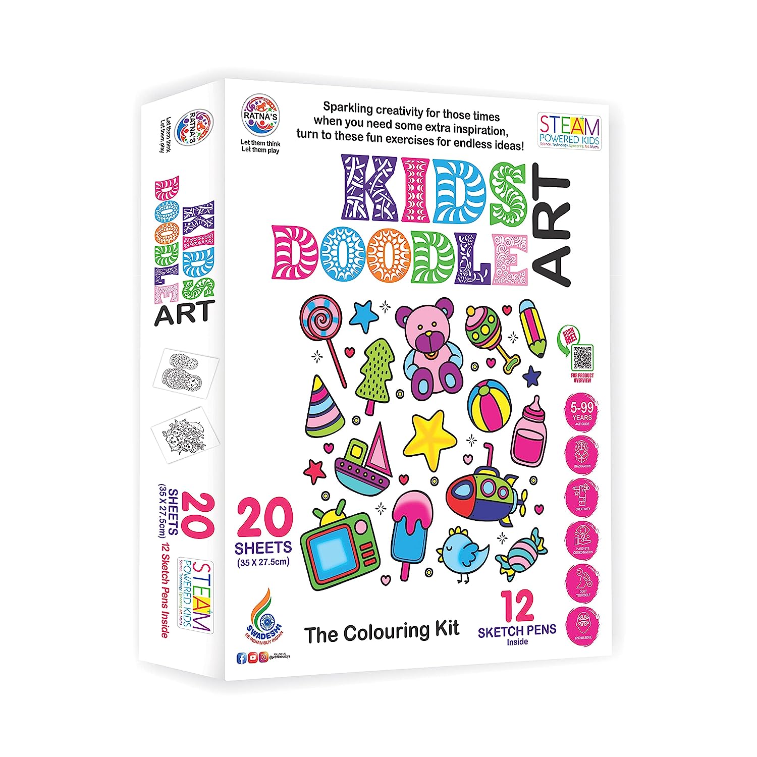 Ratna's Kids Doodle Art Colouring Kit Having 20 Sheets & 12 Sketch Pens | let The Child Learn with Fun Along with This Coloring kit