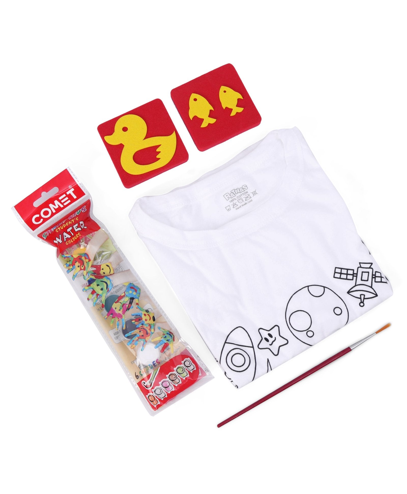 Design your t-shirt with your creativity and make it more designer, colourfull and beautiful. Designer stamps, and six colours and painting brush is provided. The t-shirt is washable and u can use it again and again. Enhances imagination and creative skills. The kit is designed as an art activity to help kids visualize, conceptualize and create a unique piece of art. Teach kids colour mixing concepts and aids in creating the most unique colours themselves.