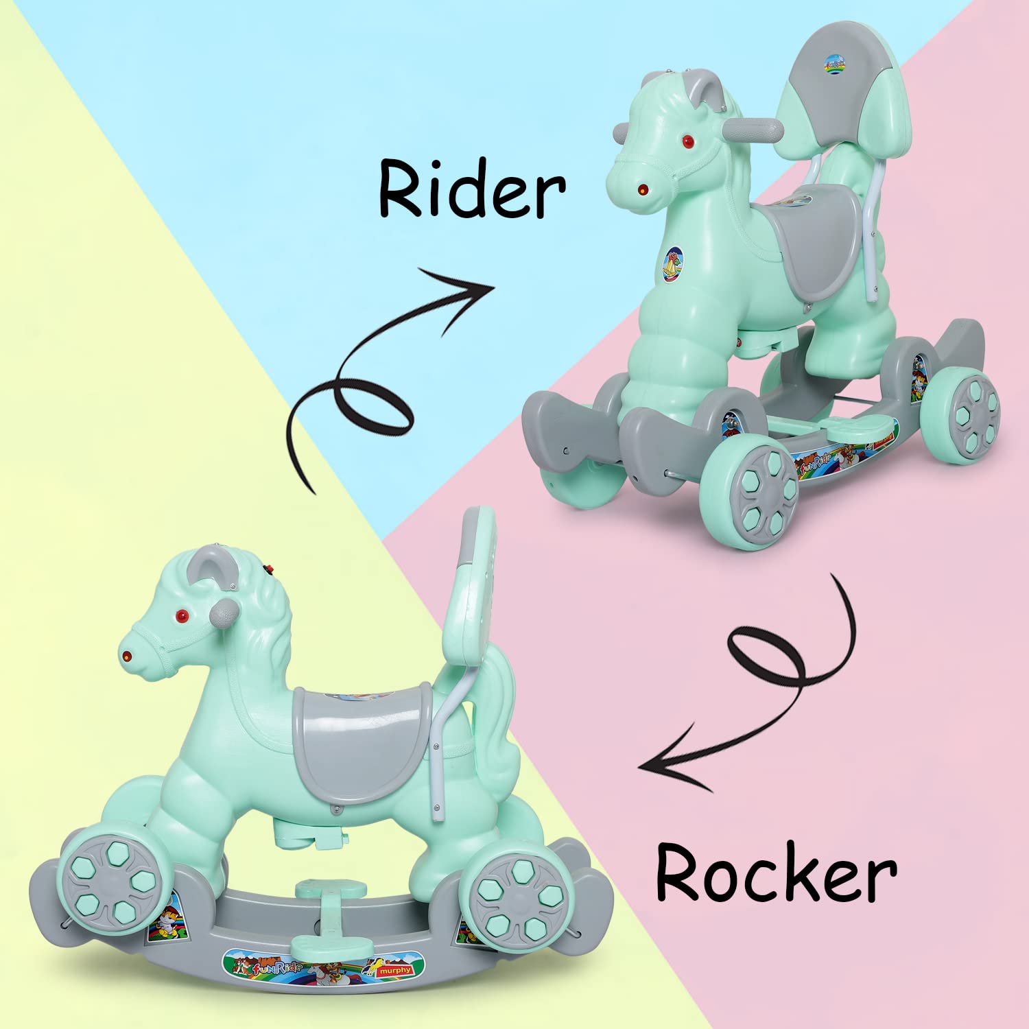 Rocking Horse Ride On for Kids - Murphy Super 2-in-1 Musical Horse Rocker Cum Ride On Toy with Backrest - Ideal Age - 1 Year to 3 Years, Weight Supported - Upto 25 KG- (Colour May Vary)