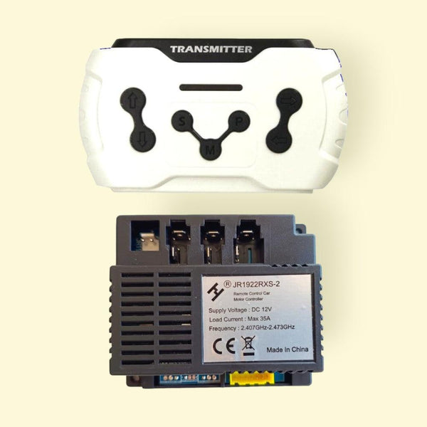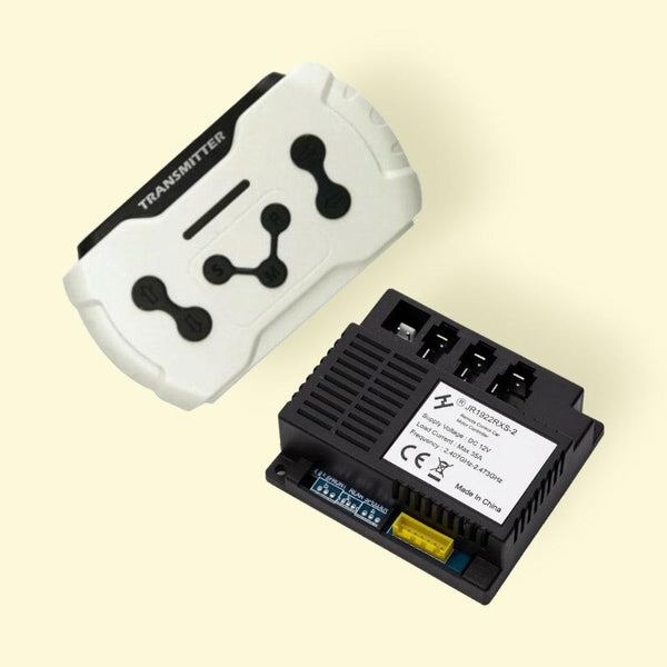 The Set of JR1922RXS-2 12V Kids Powered Ride on Jeep and JR1806TX-2.4G Bluetooth Remote Control is a convenient replacement set designed to restore functionality to your child's electric ride-on vehicle. This set includes a control box and a remote control, making it compatible with various 12V kids' ride-on cars, jeeps, and other vehicles.
