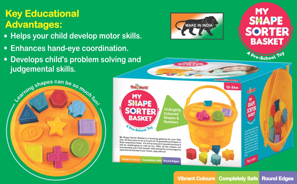 toymate My Shape SORTER Basket- A Pre School Toy with 10 Shapes & Colours- for Age 2 Years & Above.