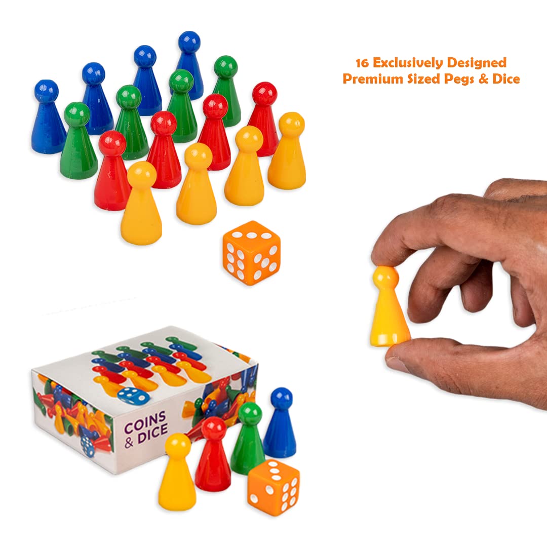 LUDO AND SNAKES & LADDERS (Premium Small) All time favourite pass - time in an exciting new look. Leave no stone unturned in giving your child an all-round multifaceted glimpse of games. They’re sure to develop a fondness for attempting different puzzles, construction sets, mindbenders, creative art work, and riddles, as a great way of giving their minds some exercise and keeping them young. The snakes and ladder game keeps your little one's brain active and alert. Fun, excitement, and joy after winning is surely going to make your kid happy. It's time to join your kid for a great game together. CONTENTS - ( 1 ) 1 Dice ( 2 ) 16 pegs in red , blue , green , yellow ( 4 each )